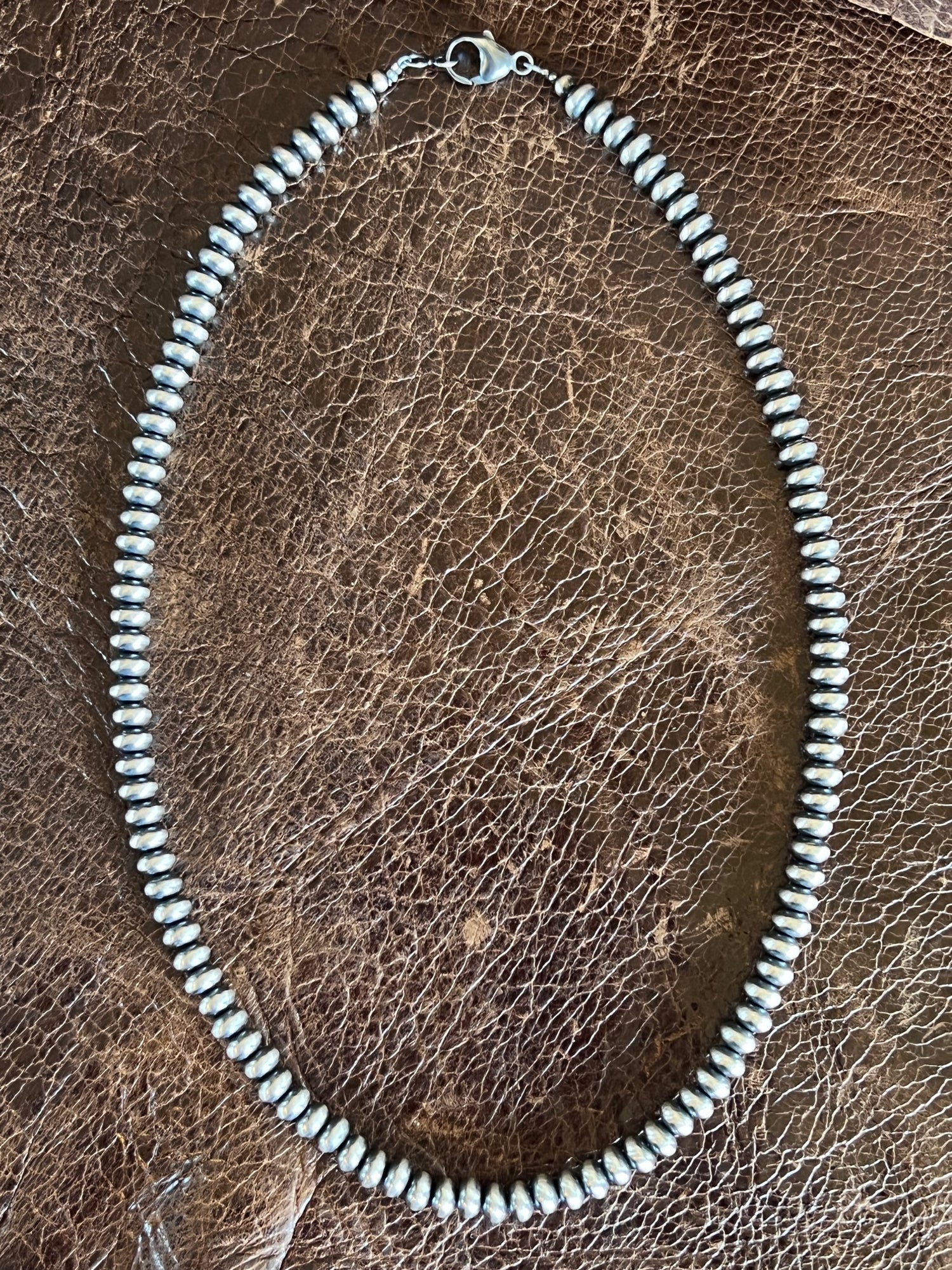 You will LOVE this strand of sterling silver oxy beads! Instead of the traditional round shape, these are saucer shaped. They add a new look when adding your favorite pendants... or when wearing alone! They are very trendy when worn alone, as well! They have a lobster claw clasp which is also oxidized to match the beads.