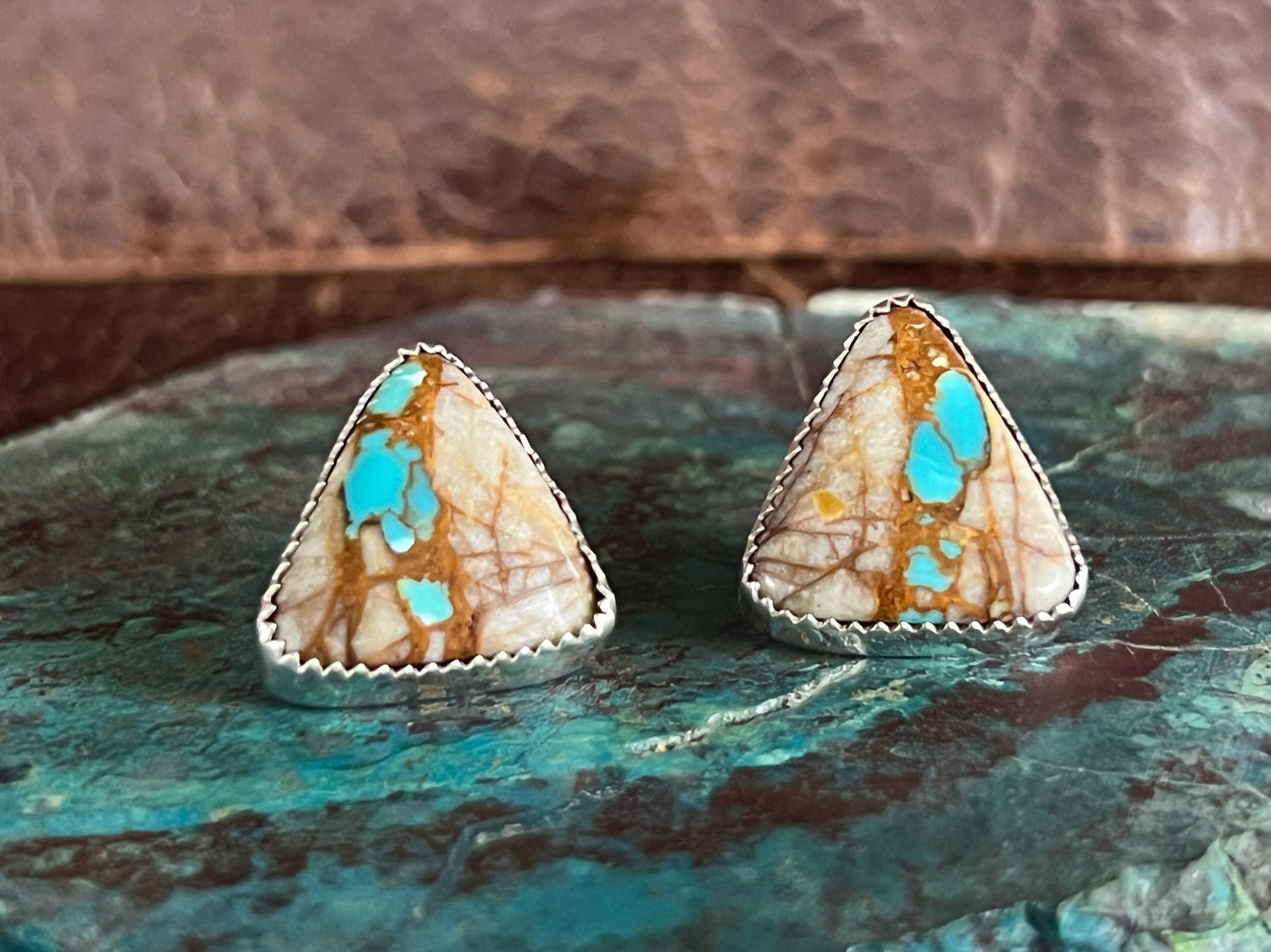 The contrast of the vibrant blue & the earthy brown tones in Royston Ribbon turquoise make this a high demand stone for jewelry making. These earrings feature the beautiful stones which are simply set in a serrated bezel with posts & earring backs included. They are great for every day wear & also an elegant evening out. They have a timeless style & you'll want to wear them every day!