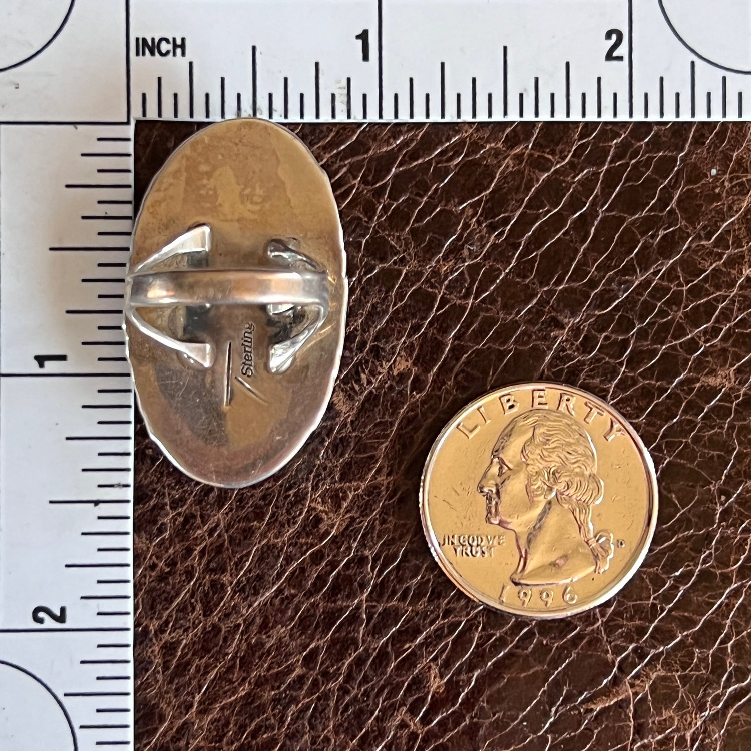 Stamped sterling & also has the artist's hallmark. The Native American artist is believed to be Navajo Travis Largo.